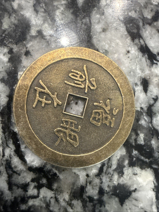 6 Aluminum 38MM Chinese Token with Symbols, dragon, bird.