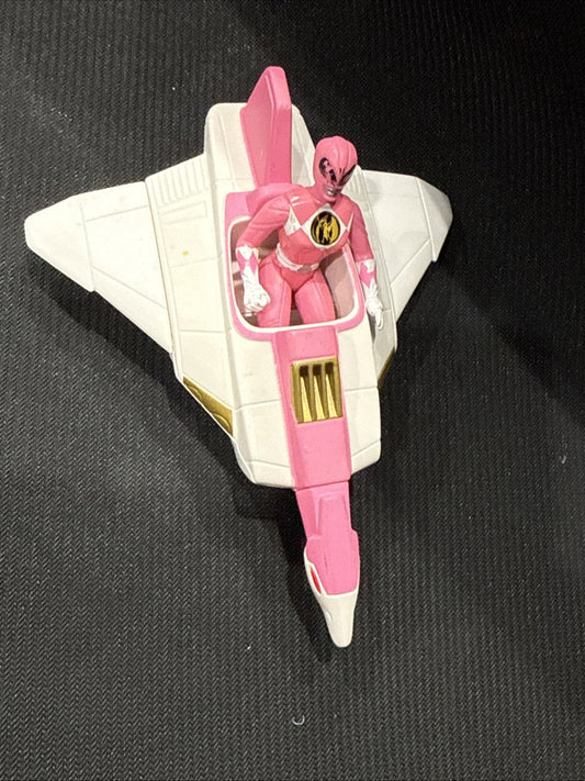 Vintage 1995 SABAN White & Pink Spacecraft on 4 Wheels With Pink Power Ranger